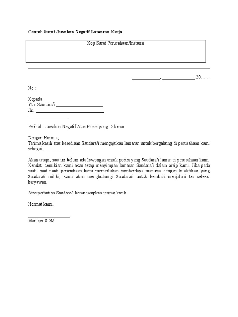Contoh email menolak tawaran kerja bahasa inggris. Berikut adalah beberapa contoh surat lamaran kerja yang ditunjukkan untuk beberapa perusahaan, seperti pt, bank, indomart, dan lain sebagainya. Tentu di setiap akhir sesi wawancara dari suatu perusahaan, kita bisa menilai apakah kita sudah sesuai dengan tempat dan jabatan yang telah kita lamar sebelumnya. Jadi seperti apa struktur dari sebuah surat lamaran kerja yang baik dan benar? Nah, jika kamu memang sudah matang akan keputusan untuk menolak tawaran tersebut, lebih baik kamu langsung membalas email dan sms atau menjawab. Tuan/puan, penolakan tawaran menjalani latihan industri merujuk kepada surat tuan/puan <nombor surat> yang bertarikh <tarikh surat tawaran>, saya ingin memaklumkan bahawa saya amat berterima kasih di atas kerjasama pihak tuan/puan menerima dan menawarkan tempat. Jika kita sudah merasa tidak puas dengan lamaran yang telah kita kirimkan. Contoh surat pengunduran diri dari jabatan. Berikut contoh surat penolakan lamaran kerja yang biasanya diberikan oleh perusahaan kepada pelamar kerja yang ditolak bahkan tidak jarang kawan kledo mendapatkan tawaran langsung untuk bekerja di sana saat ada lowongan kerja. Terima kasih contoh surat penolakan lamaran kerjanya. Serta jumlah pencetakan kartu asuransi yang dinilai masih bisa dipenuhi, membuat kami belum bisa menerima tawaran kerjasama dari perusahaan yang bapak/ibu pimpin. Contoh surat lamaran kerja yang baik dan benar untuk dijadikan referensi dalam usaha mencari kerja di sebuah perusahaan sesuai dengan keahlian kamu. Bagi seseorang, bekerja merupakan suatu kewajiban yang harus dilakukan, karena dengan bekerja kita dapat memperoleh penghasilan.